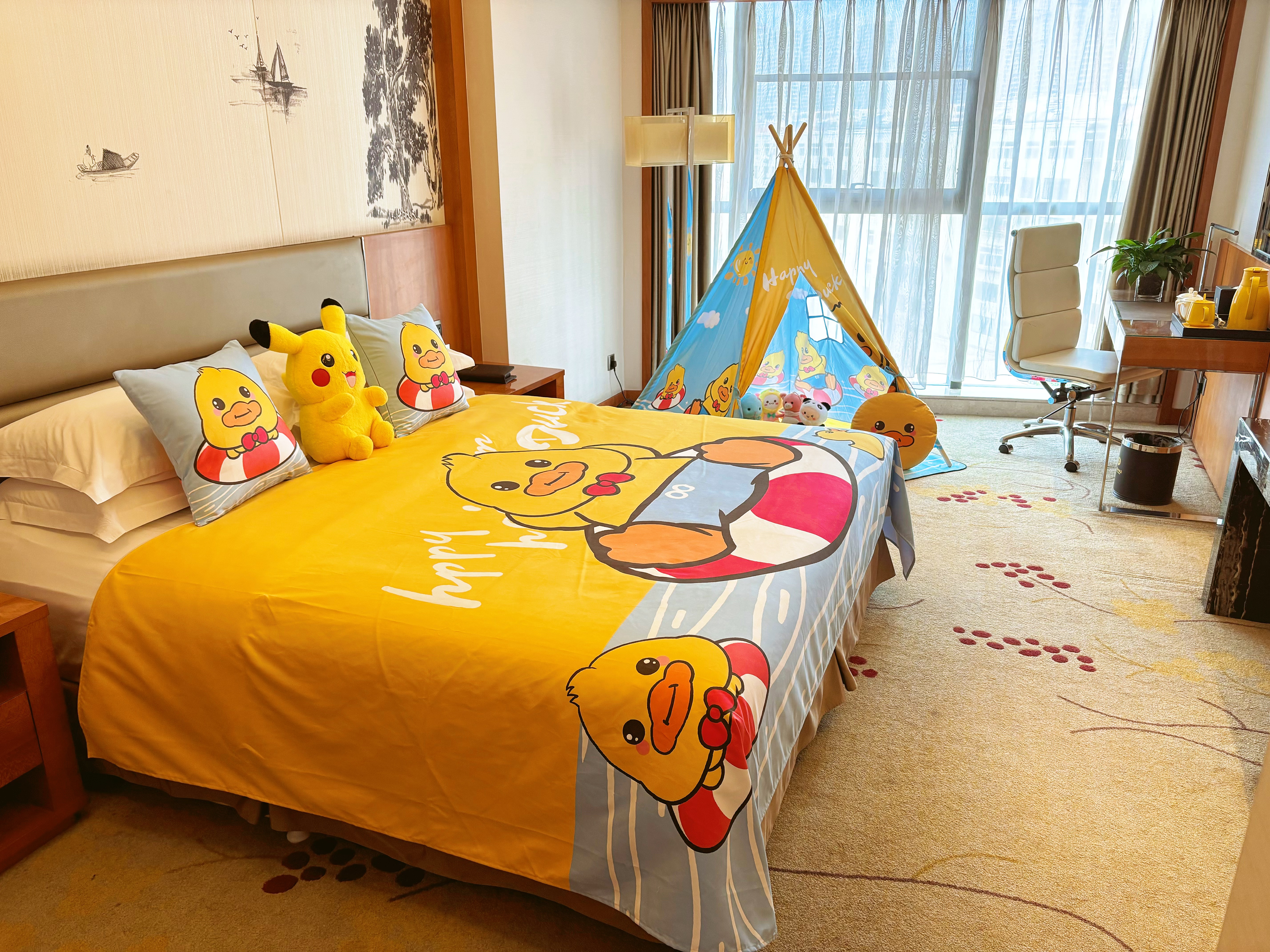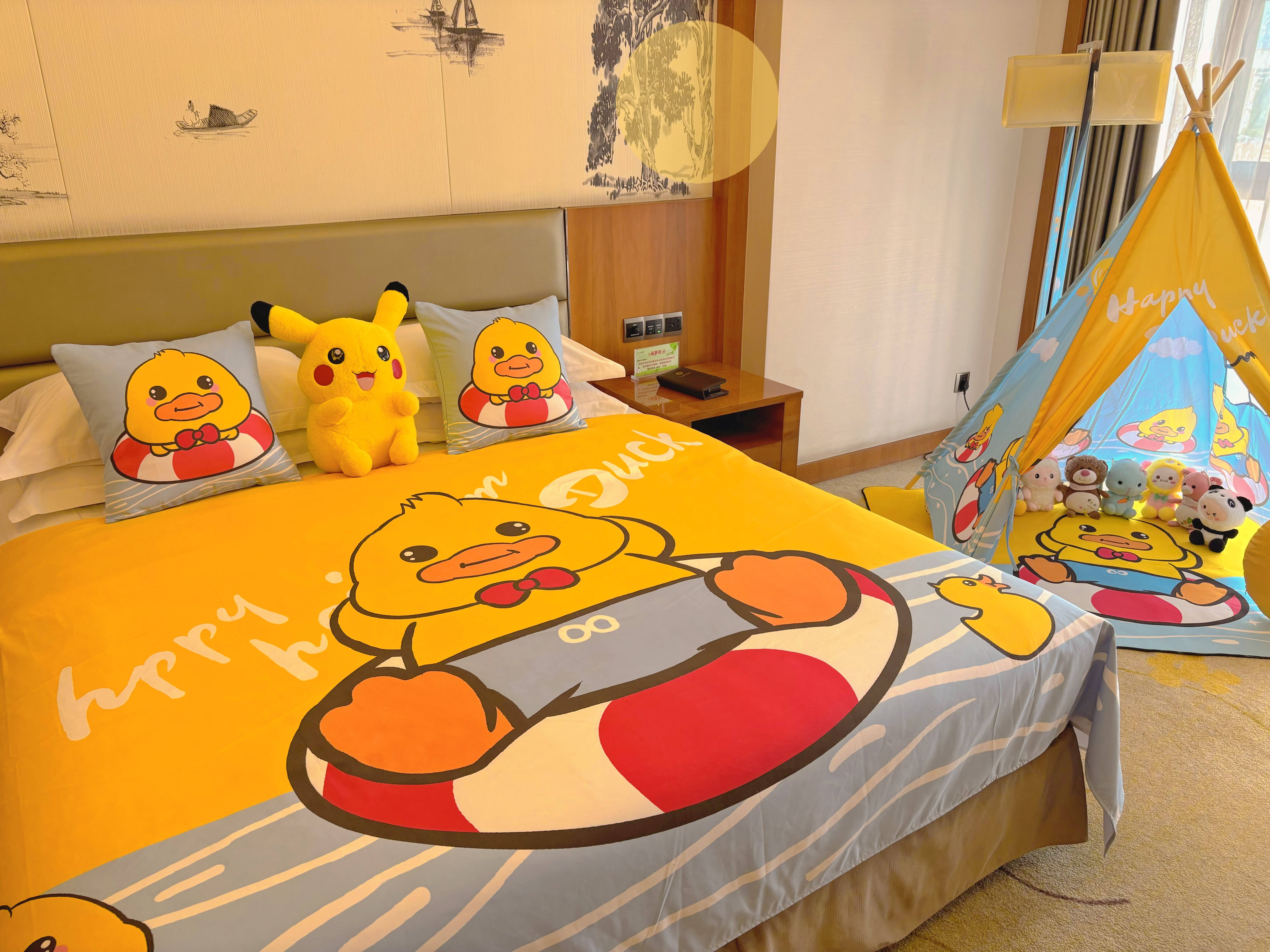 小黄鸭主题亲子家庭套房房 1张大床 2张双人床